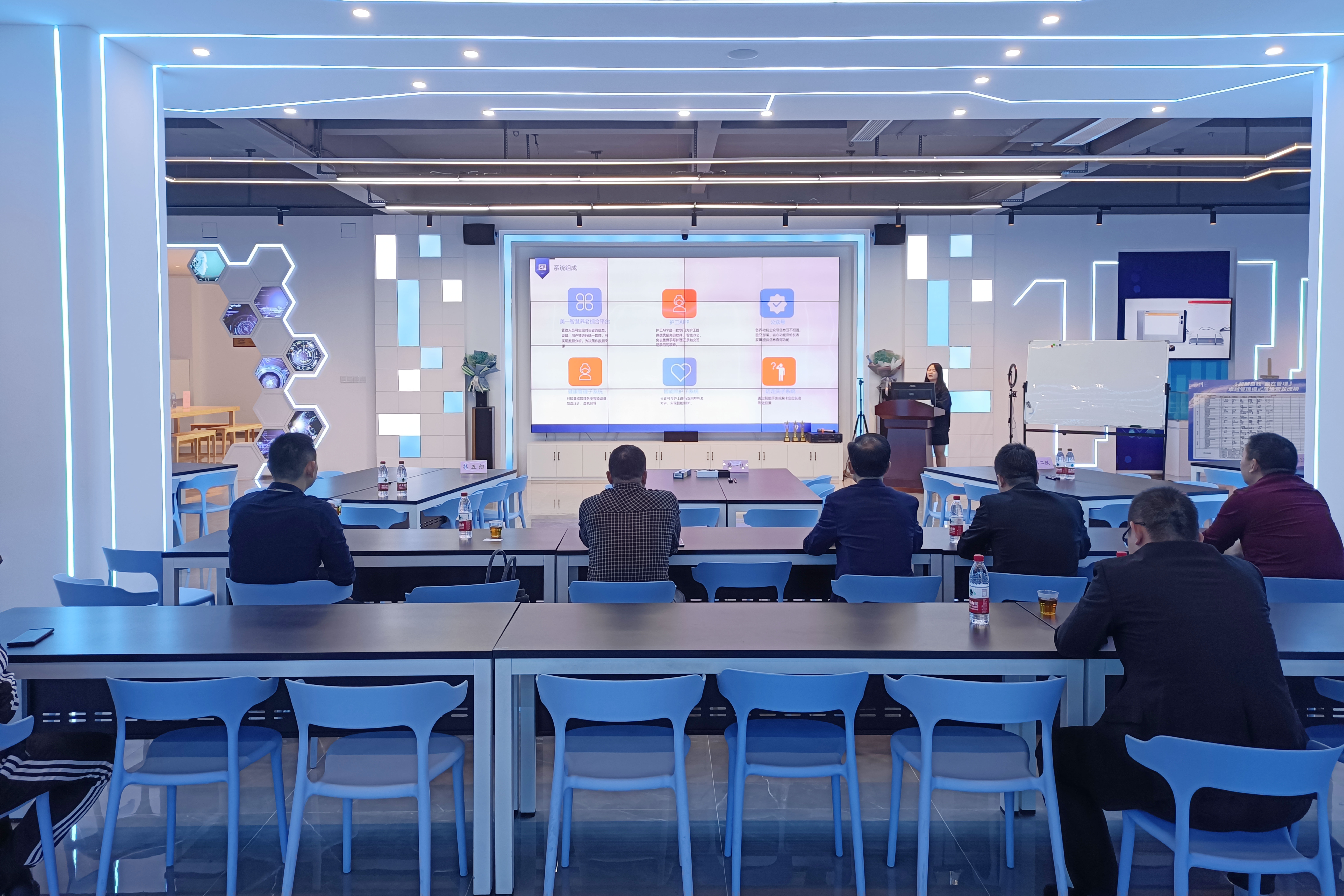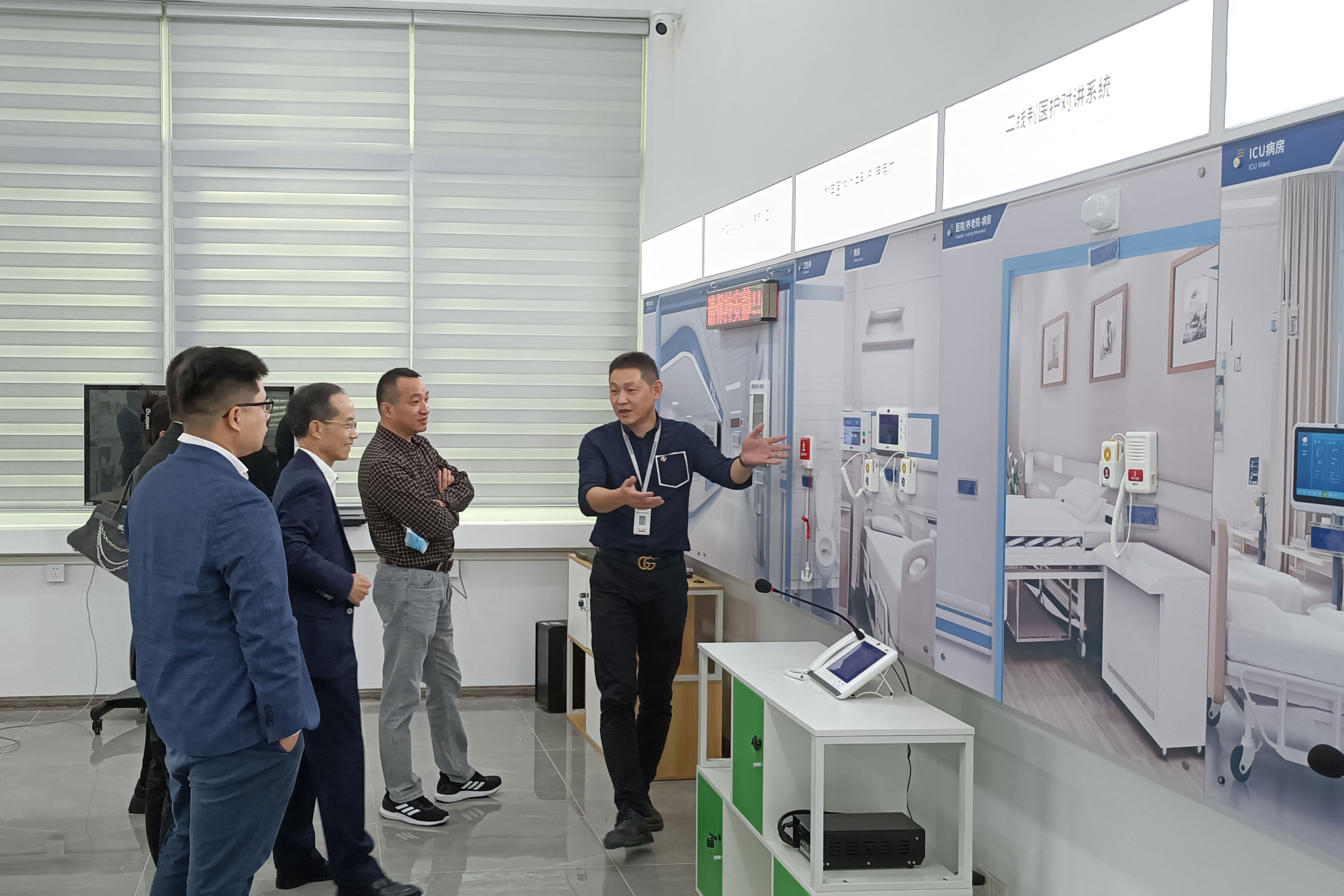 11月10日,泉州市民政局副局長蔡永升,四級(jí)調(diào)研員張?jiān)罊?quán),率養(yǎng)老服務(wù)科科長方海濤、福建伍心養(yǎng)老服務(wù)有限公司董事長陳柳樹丶福建省尚善養(yǎng)老管理有限公司總經(jīng)理曾艷紅一行前往我司關(guān)心指導(dǎo)。調(diào)研組一行聽取了我司關(guān)于當(dāng)前智慧養(yǎng)老現(xiàn)有系統(tǒng)、產(chǎn)品建設(shè)情況的匯報(bào)。
