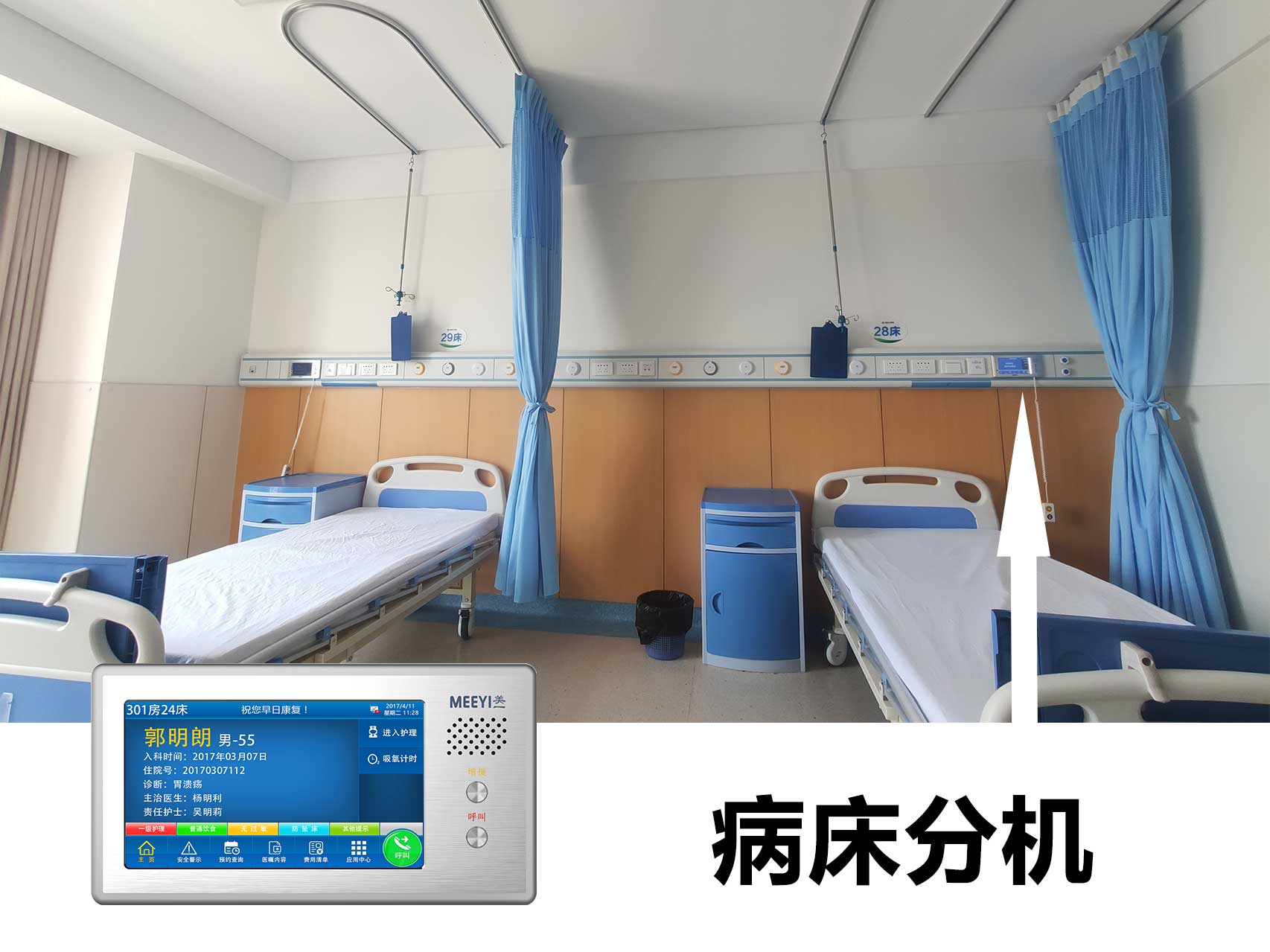 我司自主研發(fā)的“美一”智慧醫(yī)院相關(guān)智能化系統(tǒng),包括信息發(fā)布、取藥叫號、分診排隊、醫(yī)護(hù)對講、ICU探視、醫(yī)患求助、無線呼叫等(點擊查看解決方案),為醫(yī)院、養(yǎng)老院、福利院提供智能化解決方案,可為用戶免除多品牌電子產(chǎn)品的繁瑣對接等問題。系統(tǒng)基于我司自主研發(fā)的沃爾卡智慧物聯(lián)網(wǎng)平臺,支持多類型設(shè)備接入,兼容現(xiàn)有各類傳輸網(wǎng)絡(luò),能夠與醫(yī)院的HIS系統(tǒng)無縫銜接,數(shù)字傳輸、方便快捷。