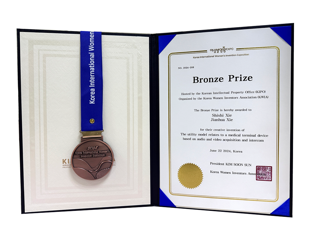 技術(shù)成果方面,環(huán)宇通醫(yī)療機(jī)構(gòu)護(hù)理輔助機(jī)器人具備高精度的智能導(dǎo)航系統(tǒng),能夠在復(fù)雜的醫(yī)院環(huán)境中實現(xiàn)自主定位和路徑規(guī)劃,有效避開障礙物。同時還能滿足遠(yuǎn)程醫(yī)療協(xié)助、智能監(jiān)控、自動消毒與清潔及模塊化設(shè)計等多種需求,并為之設(shè)計了直觀易用的人機(jī)交互界面,使醫(yī)護(hù)人員和患者能夠輕松地與機(jī)器人進(jìn)行交流和控制,提升用戶體驗。這些關(guān)鍵技術(shù)點體現(xiàn)了護(hù)理輔助機(jī)器人在提升醫(yī)療服務(wù)質(zhì)量、減輕醫(yī)護(hù)人員工作負(fù)擔(dān)、提高患者護(hù)理體驗以及促進(jìn)醫(yī)療資源優(yōu)化配置方面的創(chuàng)新和實用性,具有很好的市場潛力優(yōu)勢,因此榮獲金獎殊榮。同期,環(huán)宇通自主研發(fā)的“基于音視頻對講的醫(yī)療終端設(shè)備”在由韓國知識產(chǎn)權(quán)局(KIPO)、韓國女性發(fā)明家協(xié)會(KWIA)組織的2024年韓國國際女性發(fā)明展中榮獲銅牌榮譽。