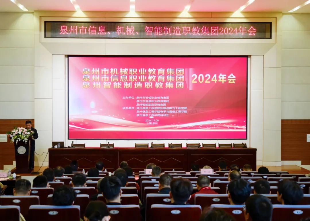 11月8日上午,泉州市信息、機(jī)械、智能制造職教集團(tuán)2024年會(huì)在泉州信息工程學(xué)院教學(xué)樓B209學(xué)術(shù)報(bào)告廳舉行。集團(tuán)成員單位代表140余人參會(huì)。會(huì)議還設(shè)置了兩個(gè)分會(huì)場(chǎng),分別聽取了三大職教集團(tuán)理事長(zhǎng)所作的集團(tuán)工作報(bào)告。環(huán)宇通董事長(zhǎng)謝建華先生受邀參與此次活動(dòng)。