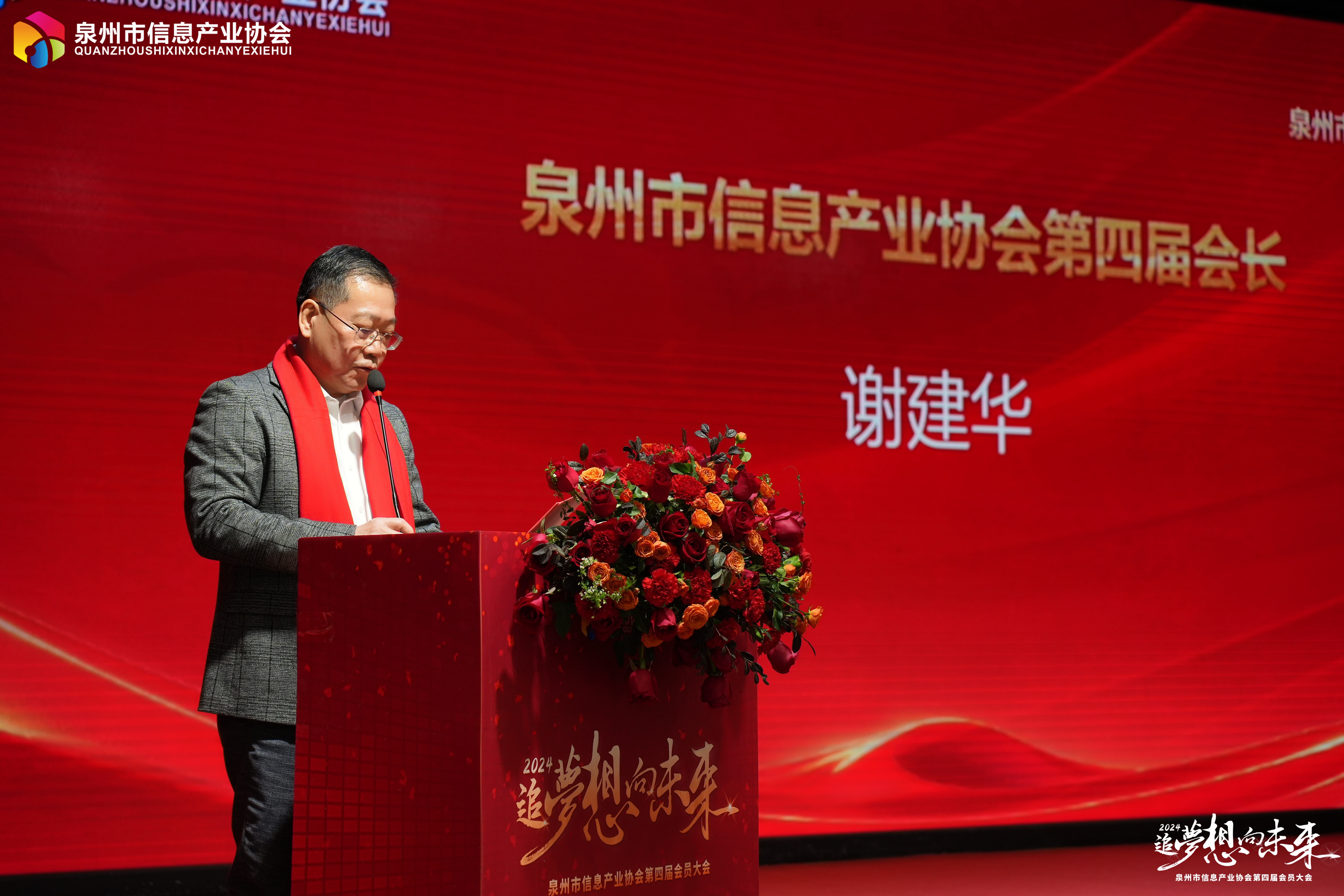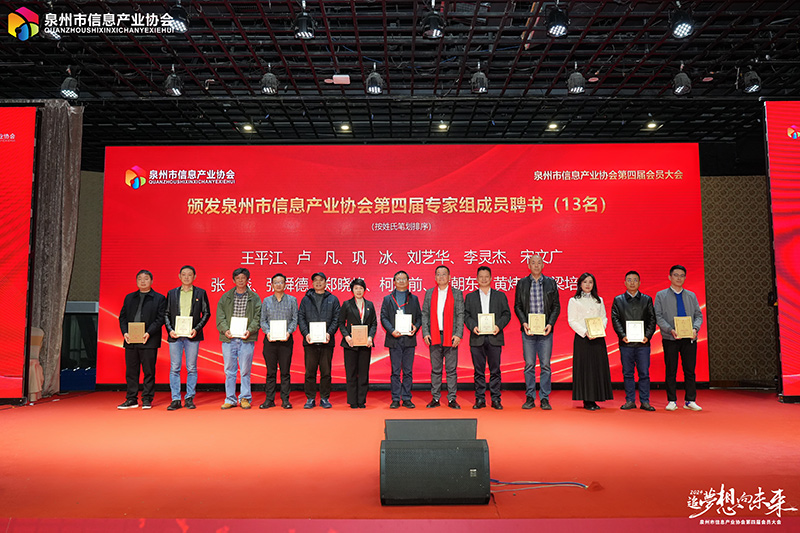 2024年12月20日,泉州市信息產(chǎn)業(yè)協(xié)會第四屆會員大會在泉州市海絲博亞酒店海絲廳隆重舉行。協(xié)會會員企業(yè)和各界專家嘉賓共計(jì)一百余人出席大會。大會上選舉了新一屆理(監(jiān))事會成員,審議通過會費(fèi)收費(fèi)標(biāo)準(zhǔn)及管理制度和協(xié)會章程。經(jīng)過泉州市信息產(chǎn)業(yè)協(xié)會第四屆理事、監(jiān)事全體莊重嚴(yán)肅的投票選舉后,我司董事長謝建華先生全票通過當(dāng)選泉州市信息產(chǎn)業(yè)協(xié)會第四屆會長。我司董事、總經(jīng)理魏雄凌當(dāng)選泉州市信息產(chǎn)業(yè)協(xié)會第四屆副秘書長,我司董事、副總經(jīng)理黃煒華受聘為泉州市信息產(chǎn)業(yè)協(xié)會第四屆專家組專家。
