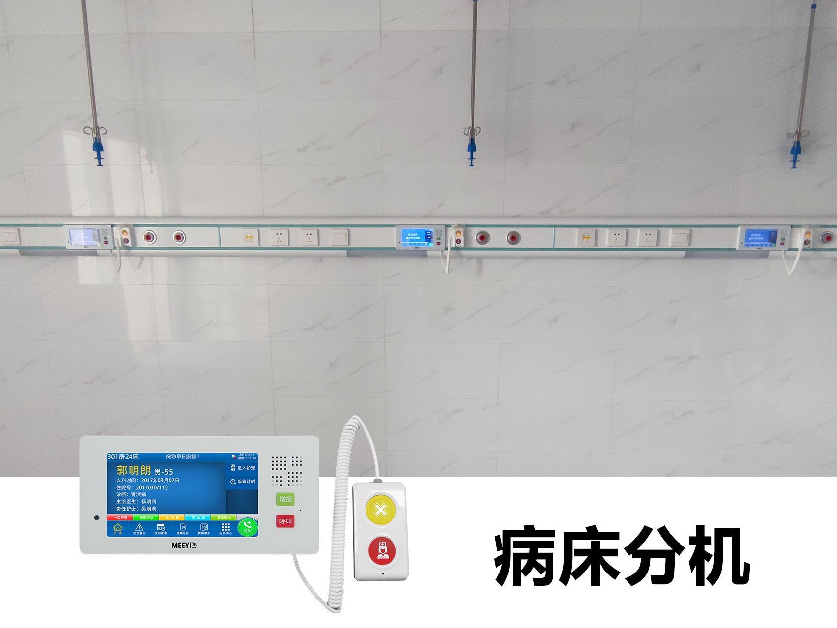 此次沙洋縣人民醫(yī)院智能化改造采用了我司自主研發(fā)的“MEEYI美一”智慧醫(yī)養(yǎng)綜合解決方案中的醫(yī)護(hù)對(duì)講系統(tǒng)。通過(guò)該方案具備: