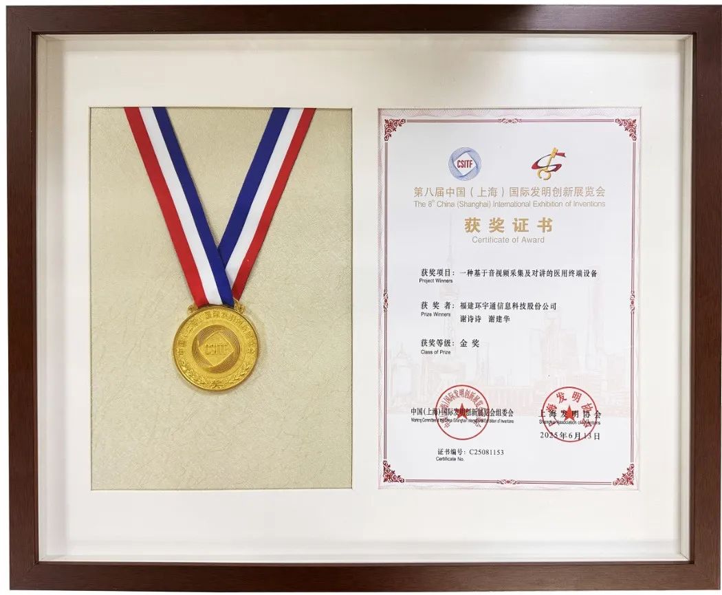 第八屆中國(上海)國際發(fā)明創(chuàng)新展覽會金獎獎牌及證書