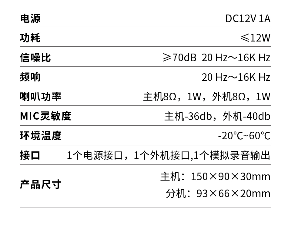 ·調(diào)節(jié)音量:本機(jī)為免提全雙工對(duì)講,面板上三個(gè)音量圖標(biāo)對(duì)應(yīng)小、中、大三種音量效果。