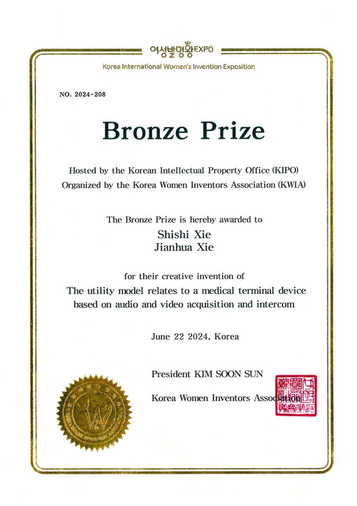 |  | | 2024韓國女性發(fā)明獎(jiǎng)銅獎(jiǎng) |