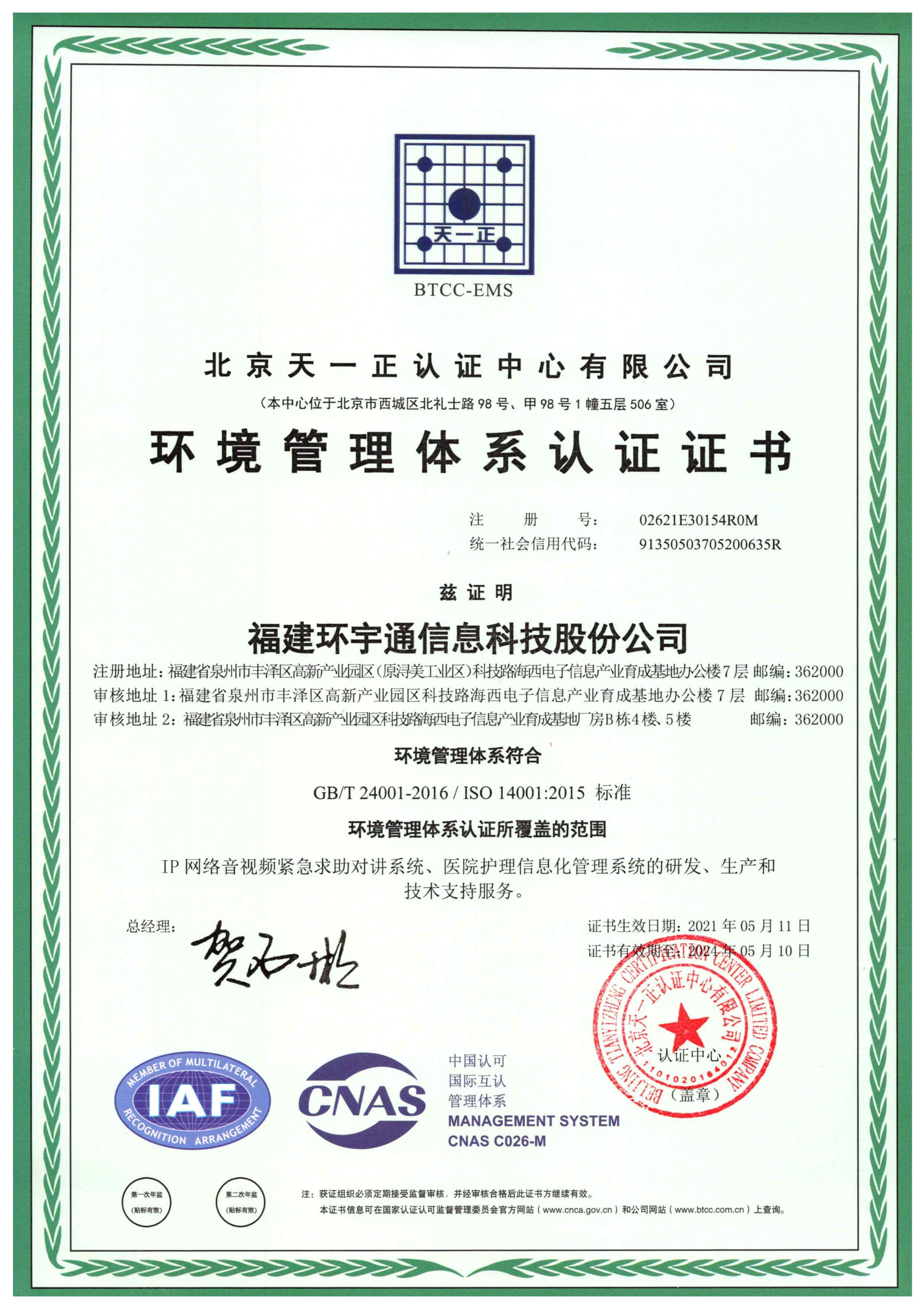 環(huán)境管理體系認(rèn)證證書(shū)