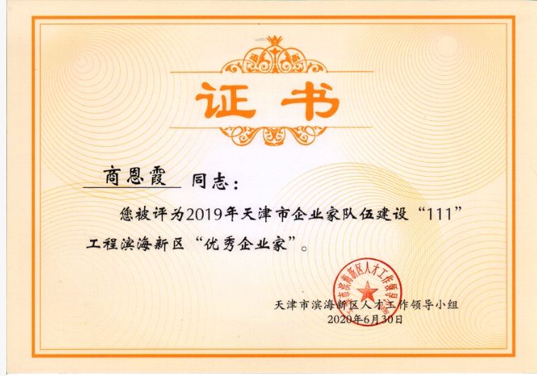 再獲殊榮!創舉總經理商恩霞榮獲2019年濱海新區“優秀企業家”稱號!