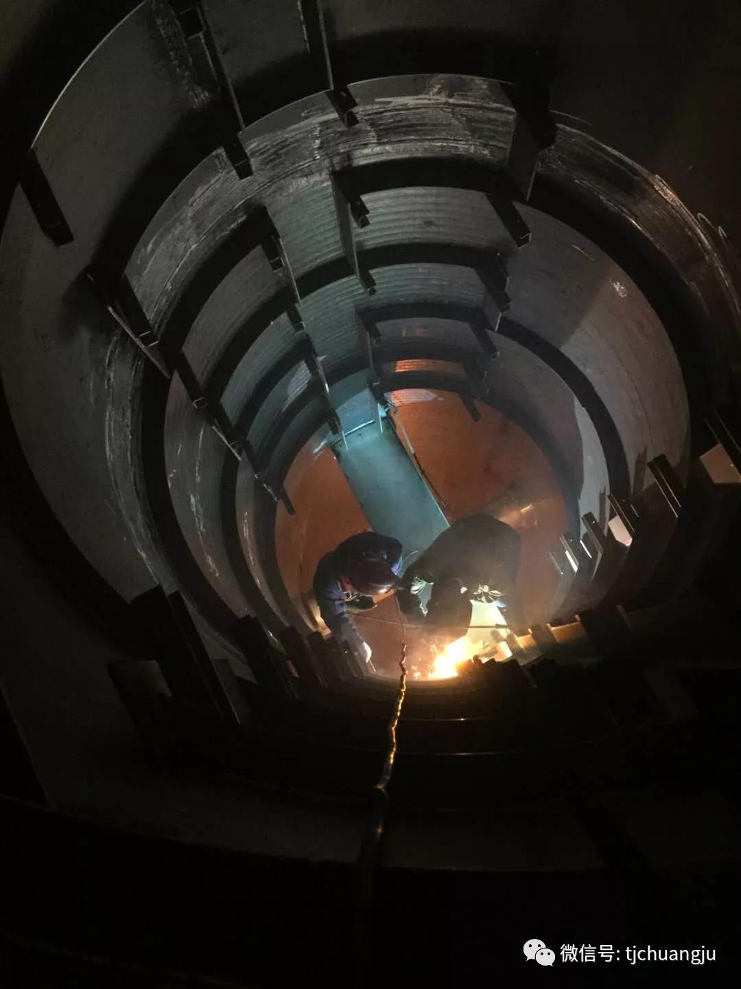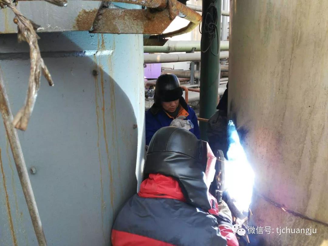 下圖為承德某公司蒸氨內件改造工程現場,工程從2018年12月28日開始,直至2019年1月10日結束。寒風中行人匆匆,露天工作的工程部同事們的辛苦可想而知。