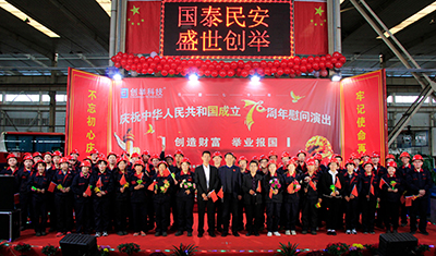 2019年10月12日為慶祝中華人民共和國成立70周年,天津市創舉科技股份有限公司(以下簡稱“創舉公司”)邀請紅楓藝術團舉辦“不忘初心、牢記使命”專場慰問演出。創舉公司中高層領導及子公司一線生產員工近百人出席觀看。