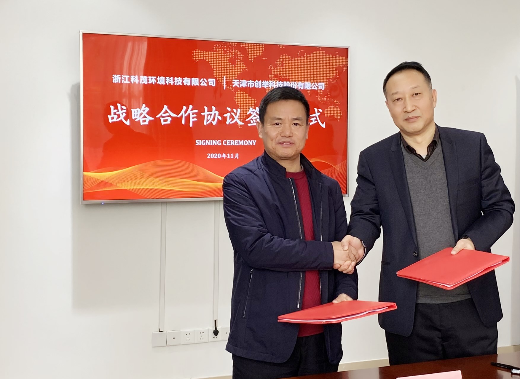 2021年1月6日,天津市創舉科技股份有限公司與浙江科茂能源科技有限公司繼簽訂合作意向書后,就雙方深度合作的相關事宜達成共識,簽署戰略合作框架協議。