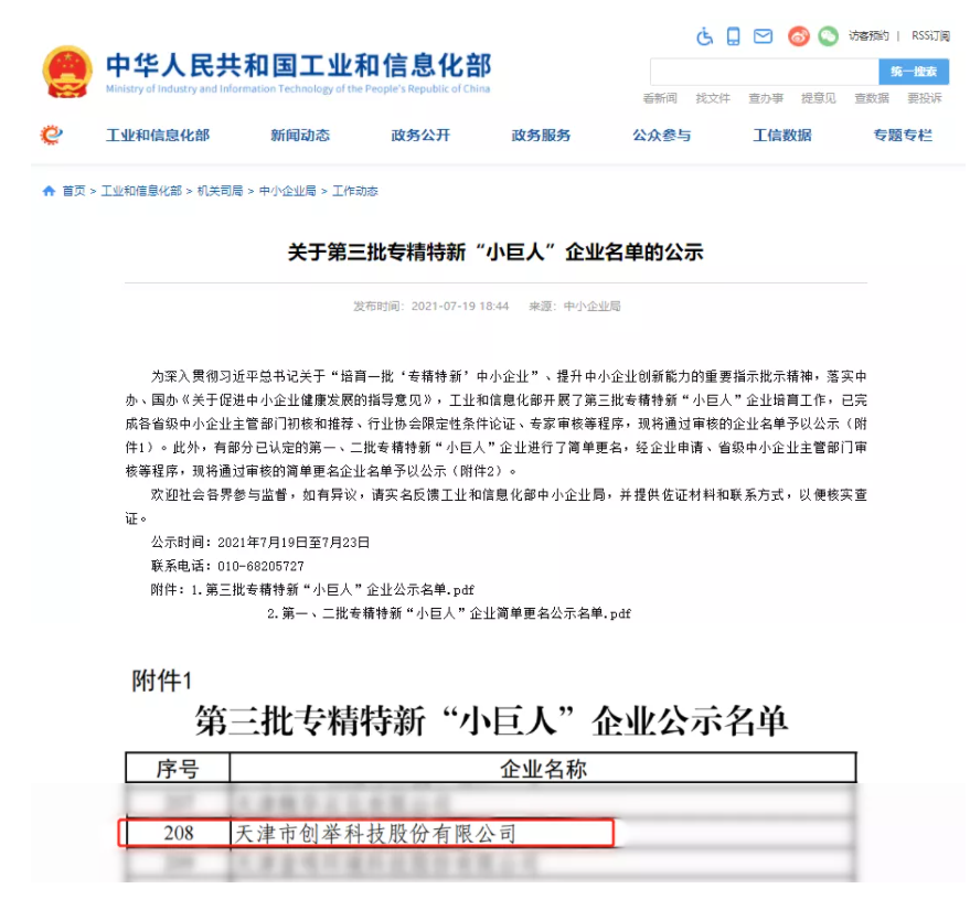 近日,國家工業和信息化部發布第三批專精特新“小巨人”企業名單,天津市創舉科技股份有限公司榮列其中,獲得國家級專精特新“小巨人”企業榮譽稱號。