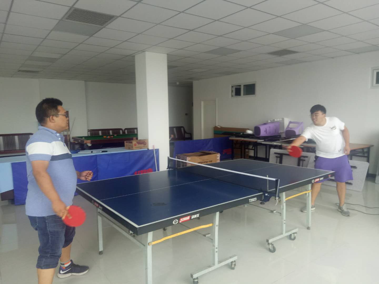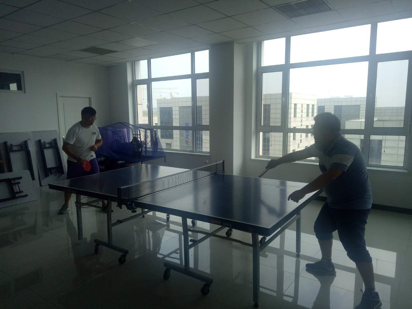 有的員工正在進行單打,你來我擋,直拍、橫拍、扣球、旋轉球、弧線球,熱鬧非凡。大家不僅提升了球技,更鍛煉了身體。