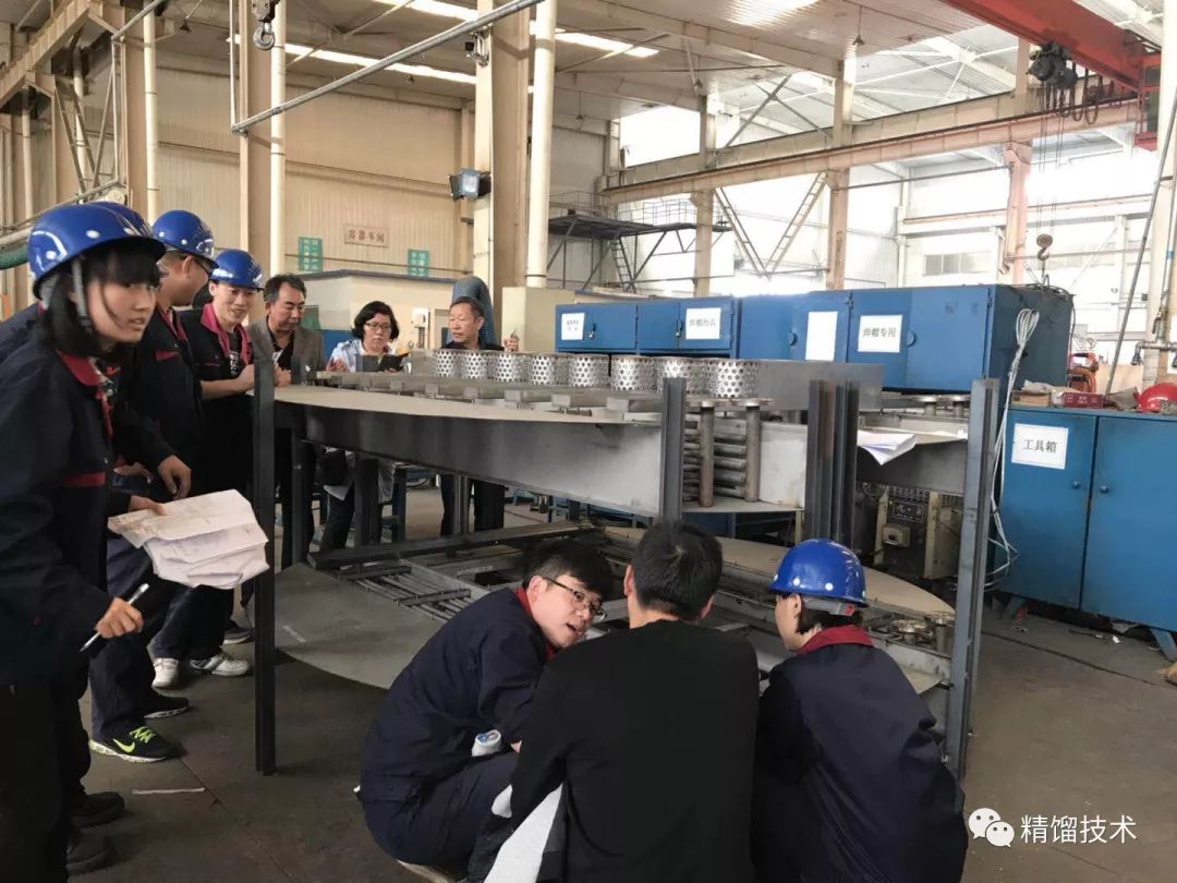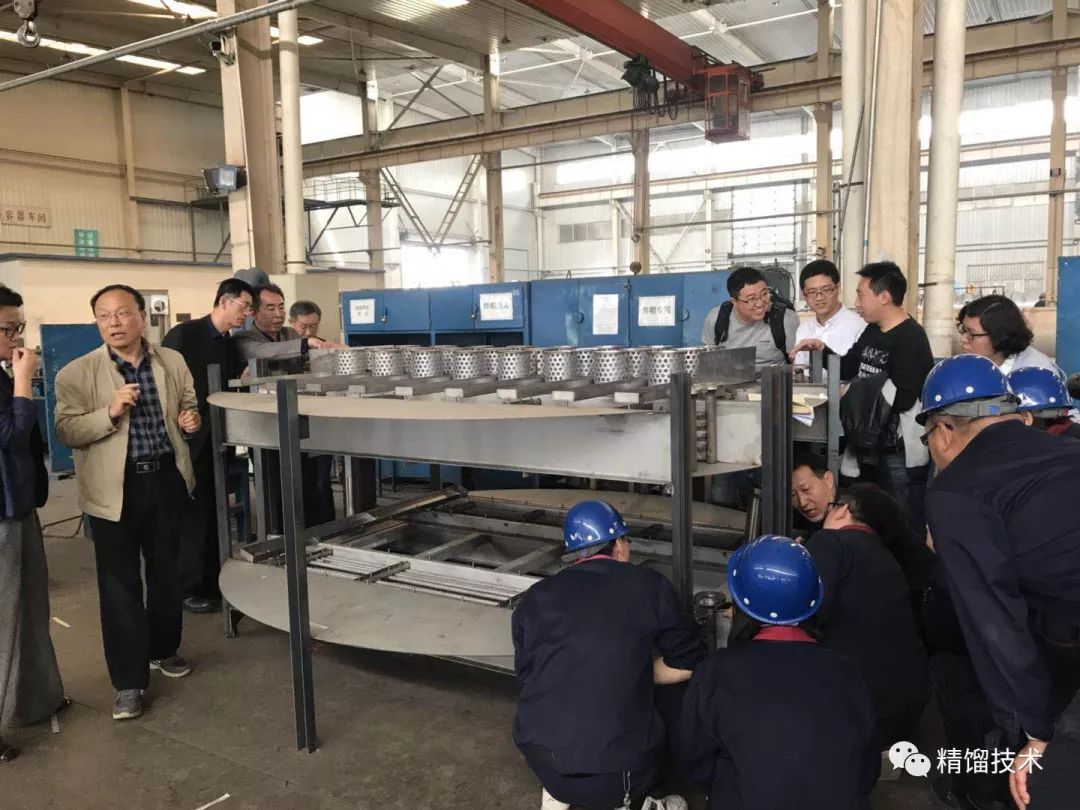 由于在實(shí)際生產(chǎn)中發(fā)現(xiàn)原塔盤壓降較高,故創(chuàng)舉公司本著對(duì)客戶負(fù)責(zé)的態(tài)度集思廣益,重新對(duì)原復(fù)合移熱塔盤進(jìn)行改進(jìn),在實(shí)現(xiàn)高效傳質(zhì)和傳熱同時(shí)進(jìn)行的前提下,降低塔盤壓降。新塔盤設(shè)計(jì)完成后,為了提早發(fā)現(xiàn)在塔盤安裝過程中可能存在的問題,設(shè)備廠預(yù)制兩層等比例的新塔盤,邀請(qǐng)浙江瀚普一行領(lǐng)導(dǎo)來創(chuàng)舉設(shè)備廠進(jìn)行考察,公司董事長王柱祥和常務(wù)副總商恩霞帶領(lǐng)工藝部、設(shè)備部、工程部相關(guān)技術(shù)人員同時(shí)陪同,及時(shí)發(fā)現(xiàn)新塔盤結(jié)構(gòu)中的缺點(diǎn)并進(jìn)行優(yōu)化。充分體現(xiàn)了敬業(yè)、進(jìn)取、創(chuàng)新的創(chuàng)舉精神。